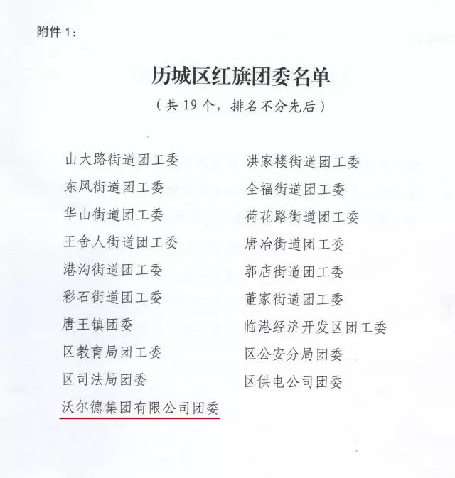2018年5月11日,共青團(tuán)濟(jì)南市歷城區(qū)十五屆五次全委(擴(kuò)大)會(huì)議勝利召開(kāi),會(huì)上對(duì)2017年度在共青團(tuán)工作方面取得優(yōu)秀成績(jī)的先進(jìn)集體及先進(jìn)個(gè)人進(jìn)行了表彰。沃爾德集團(tuán)團(tuán)委、沃爾德影視公司團(tuán)支部及團(tuán)干部、團(tuán)員、青年志愿者代表榮獲各項(xiàng)榮譽(yù)稱號(hào)。