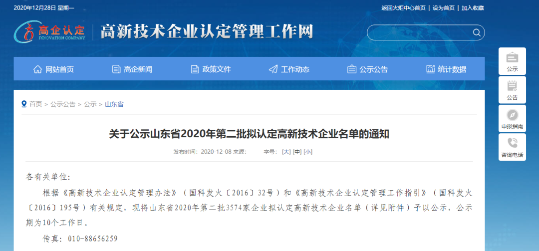 山東省2020年第二批擬認(rèn)定高新技術(shù)企業(yè)名單