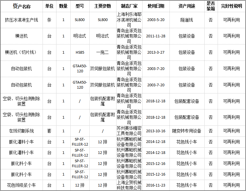 受委托,我公司將于2022年2月16日下午15時(shí)在金拍網(wǎng)平臺(tái)https://www.jinpaiwang.com.cn以網(wǎng)絡(luò)競價(jià)的方式公開處置擠壓冰淇淋生產(chǎn)線、前處理系統(tǒng)設(shè)備、12排小車、包裝機(jī)等(具體見標(biāo)的詳情)。起拍價(jià)格:1092610 元(含13%稅),設(shè)有保留價(jià),競買保證金20萬元。